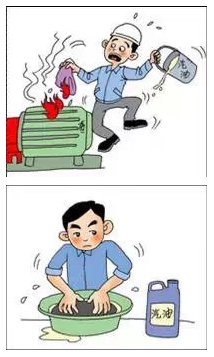 使用汽、柴油等有机溶剂擦拭设备、场地或用湿布擦拭带电电气设备。