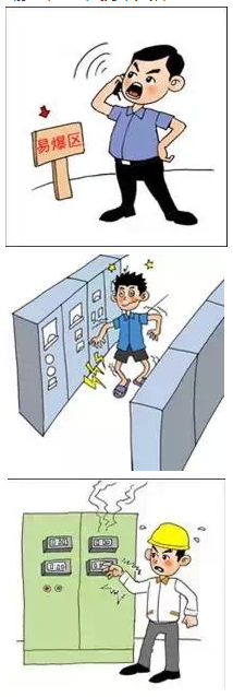 进入易燃易爆环境未按规定做消除静电处理、携带火种或接打手机。